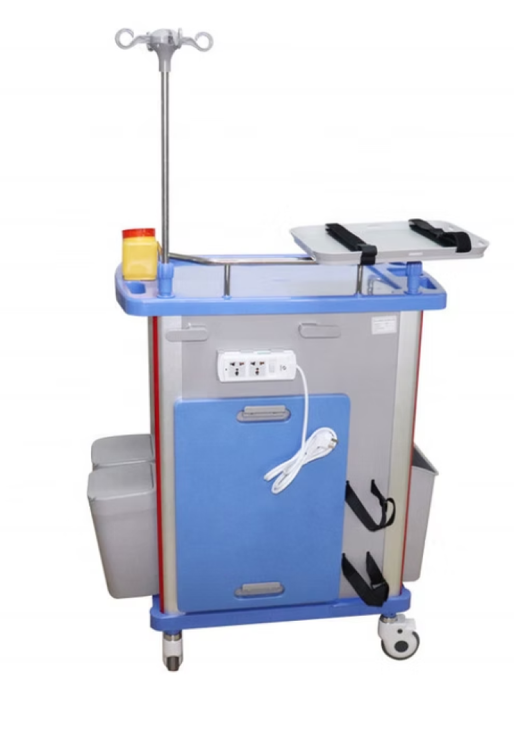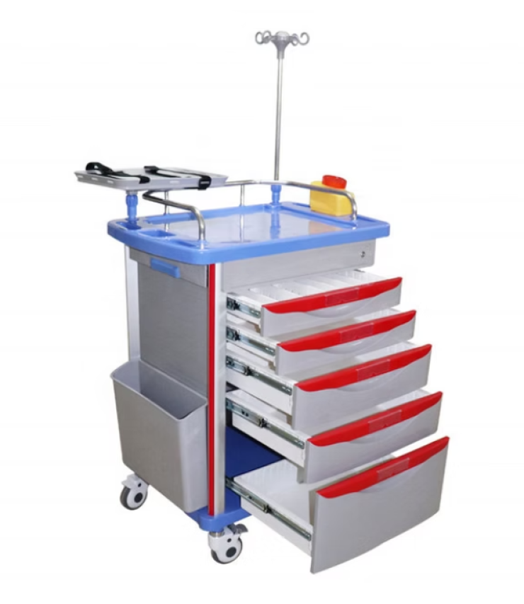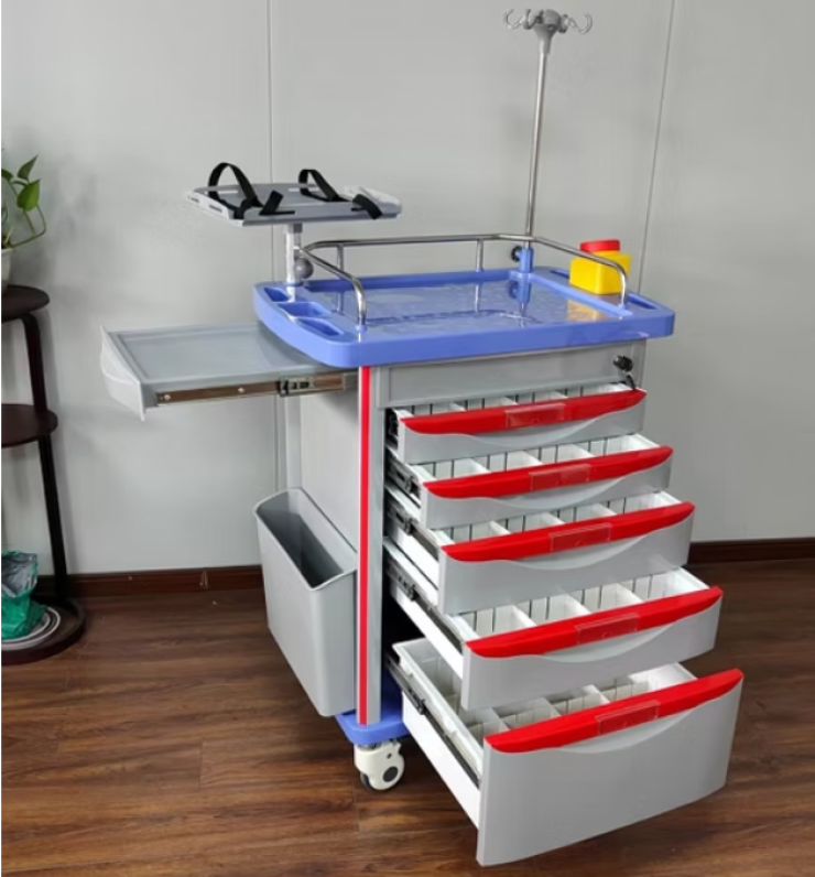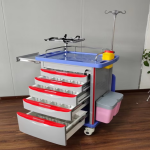 * 3 petits tiroirs (pouvant contenir respectivement le nécessaire pour intubation, le nécessaire à perfusion et les solutés)