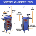 – Le plateau supérieur avec rebord, les étagères ainsi que les tiroirs sont en polymère type abs, très avantageux par son poids, sa solidité, sa fiabilité, son côté anti-corrosion et sa résistance aux produits nettoyants et désinfectant.