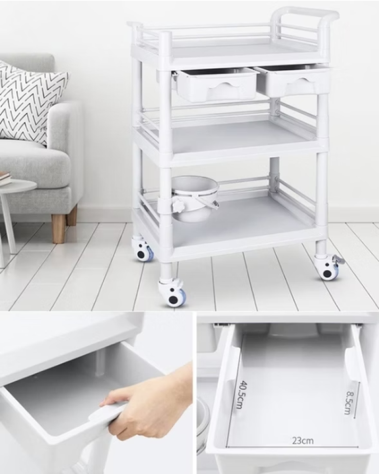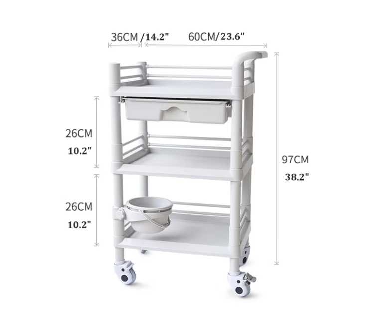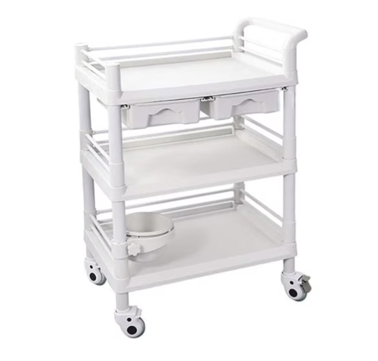 Le guéridon médical 3 plateaux offre une solution de rangement pratique et hygiénique pour les fournitures médicales essentielles.